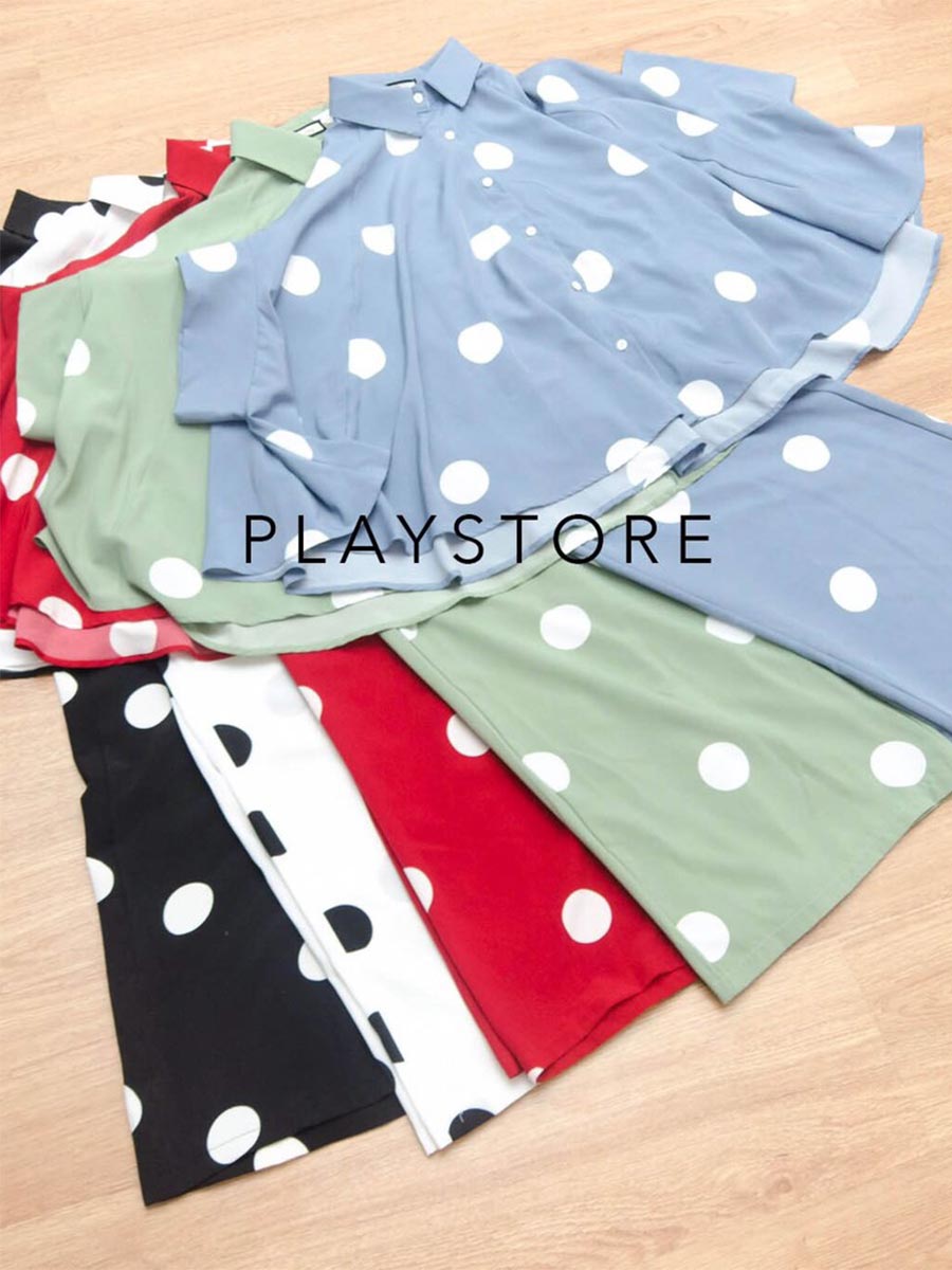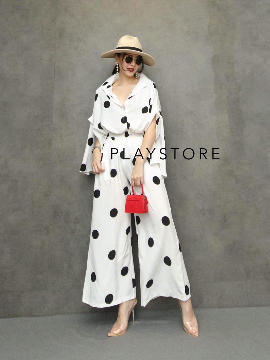 Set เข้าชุด เก๋ๆ เสื้อเชิ้ตทรงแนวๆคู่กับกางเกงขากระบอก ลายจุดใหญ่...ชิคมากมายมหาสาร!!! ตัวเสื้อเป็นทรงค้างคาวเก๋มาก กางเกงทรงดีมีกระเป๋าล้วงได้ 2 ข้างลำตัว เนื้อผ้าดีใส่แล้วเย็น ใส่สบายมากกกก ต้องมี สวยชิคทุกสีค่ะซิส!!!