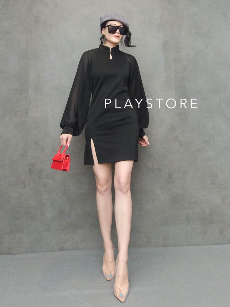 เดรสทรงสวย ดีไซน์เก๋ ดีเทลช่วงแขนแต่งผ้าชีฟองเนื้อดีซีทรูโปร่งนิดๆ ทรงแขนพองเบาๆกำลังดี ช่วงอกแต่งรูปหยดน้ำ แพทเทิร์นช่วงตัวทรงพอดีตัว สวยเก๋เบสิค ผ่าหน้าข้างขวาแอบแซ่บเล็กๆ ใส่ออกมาสวยมาก เนื้อผ้ามีความยืดหยุ่นนิดๆ ต้องมี ใส่ได้บ่อยทุกโอกาส!!!!