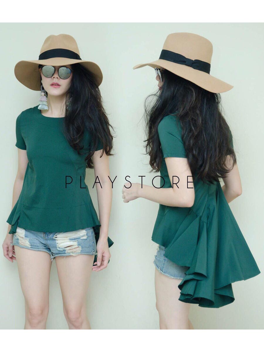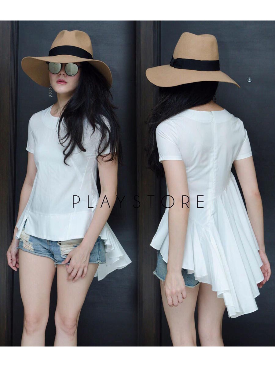 เสื้อหน้าสั้นหลังยาว แพทเทรินเก๋โดดเด่น ด้านหน้าเบสิค ด้านหลังยาวสวยเริ่ด..ดีไซน์ไล่ระดับระบายย้วยสวย มีวอลลุ่มทรงน้ำตกปังมาก แมชกับขาสั้นหรือขายาวก้อปัง สวยไฉไล เด่นกว่าใครจริงๆ..!!!